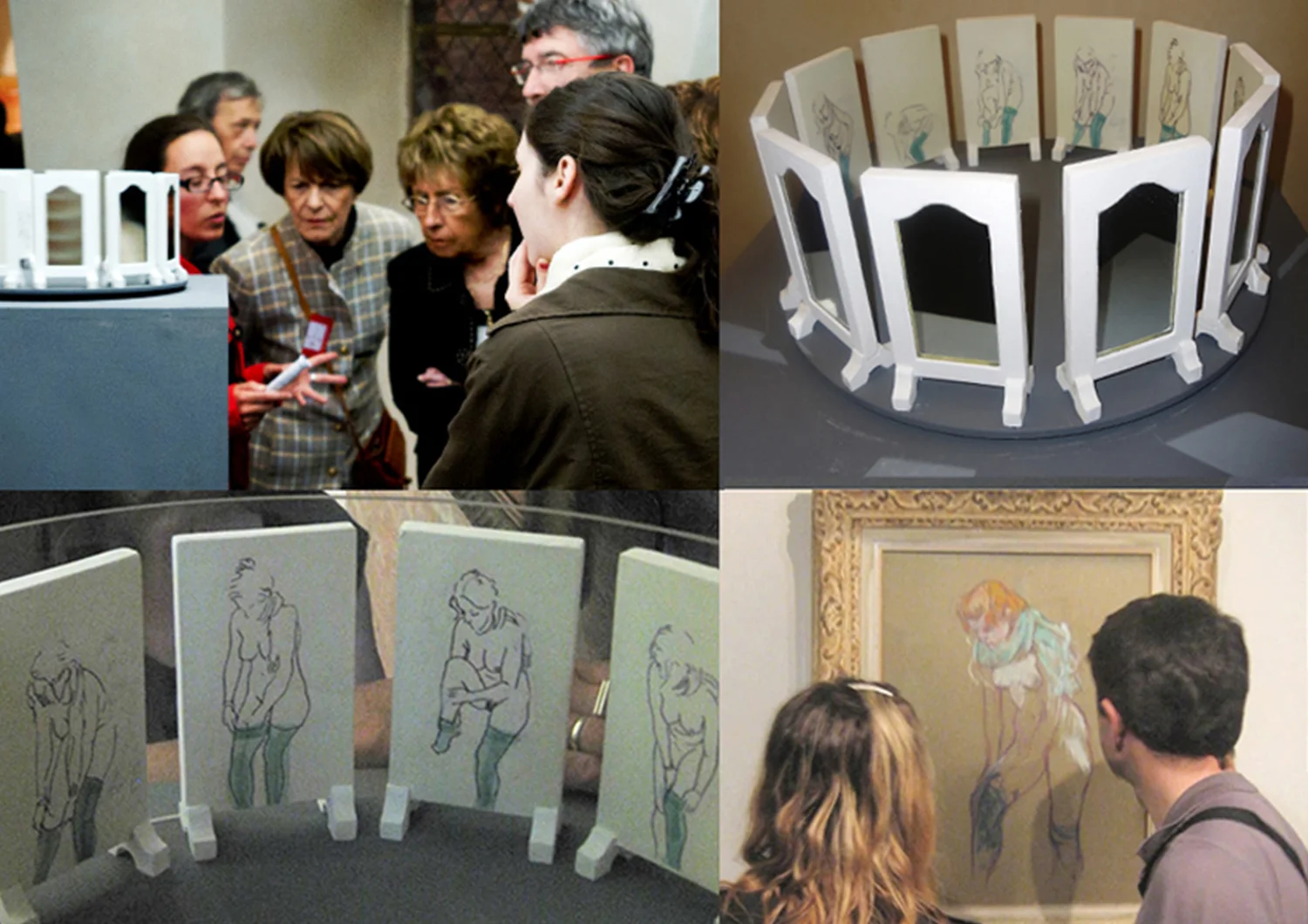 A new video work, Le Regard Clos, considering Lautrec’s Self-Portrait (1882) was hung, framed, in the ‘Salon des Portraits’, and within the gallery nearby brook & black made a contemporary 'audio-zoetrope’ and sound work referencing Lautrec’s drawing; Woman Pulling Up her Stocking (1894).