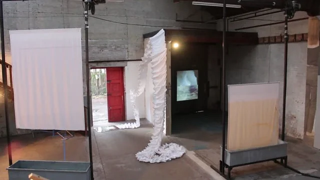 Following their joint exhibition in Denmark, and continuing their exploration of the theme of ‘home’, UK artists brook & black collaborated with Danish artists Christina Bredahl Duelund and Natascha Thiara Rydvald. In May 2015, the artists worked together for the first time, with ‘Composing Space’ – a group exhibition at the Gjethuset Gallery, Denmark. The second part of this exchange resulted in the exhibition, Arkitektoniske Kramper,* where the artists used moving sculpture, video, photography, installation and sound to transform the OVADA warehouse into a multi-layered exploration of the architectural and mental space of their shared experiences.